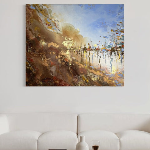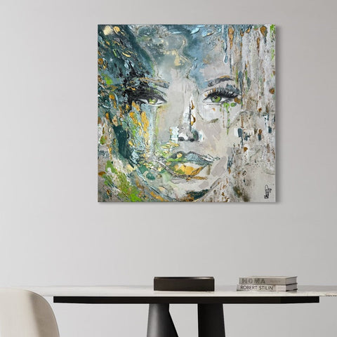Every painting begins with a Polaroid photograph taken on location. I collect sand and stones from the landscape, grind them into pigments, and embed them directly into the surface of the artwork. The landscape doesn’t just inspire the painting, it becomes part of it.